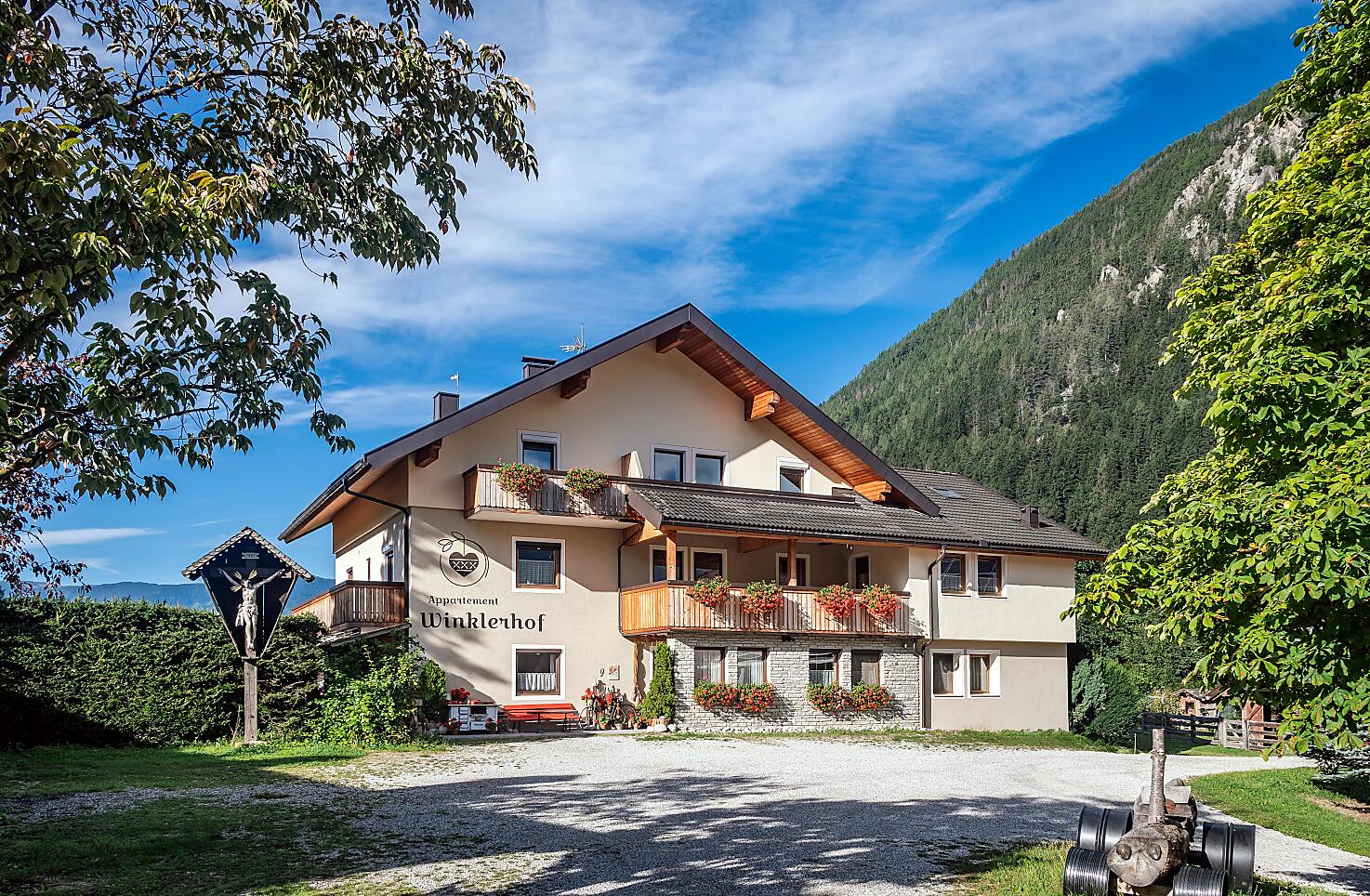 Moderní statek se nachází na slunných loukách údolí Pustertal-Kronplatz, na klidném místě, kde je příroda na dosah. Statek Winklerhof v obci Gais, obklopen nádhernou přírodou a horskou krajinou, je ideálním výchozím bodem pro četné túry po okolí, pro výlety na kolech a horských kolech údolím Pustertal a vysokohorské túry na nedaleké vrcholky hor. Lyžařské túry a výlety na sáňkách lákají hosty v zimě, při zimních túrách si můžete v klidu vychutnat bílou idylu. Ve statku Winklerhof ale můžete také pohodlně relaxovat. Moderně navržený statek s pěstováním zeleniny nabízí hostům komfortní a plně vybavené rekreační apartmány. Celkem 5 rekreačních apartmánů vás bude rozmazlovat svým vybavením a stylovým zařízením s veškerými představitelnými příjemnostmi.