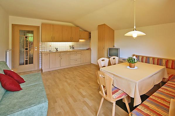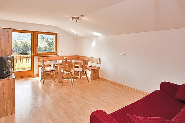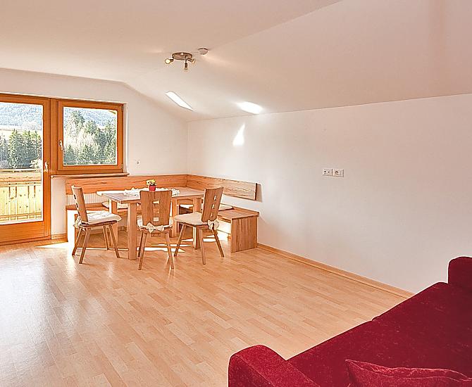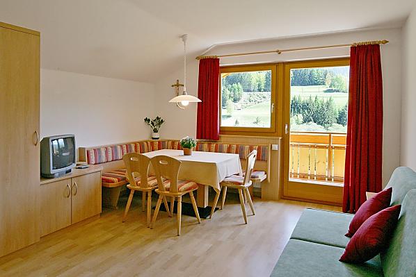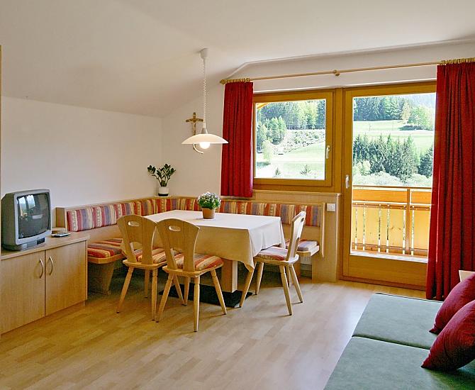 Náš slunný statek se nachází uprostred svežích zelených luk. Ráno vás probudí zpev ptáku a vecer usnete za zvuku cvrccího konzertu. Výhodná poloha statku prímo vybízí k rozmanitým, krásným peším a cyklistickým výletum. Díky centrální poloze se rychle dostanete k mnoha zajímavým výletním cílum v celém údolí Pustertal. Po dni plném nových dojmu na vás ceká komfortne zarízený rekreacní apartmán, kde si mužete odpocinout. Den však mužete zakoncit také grilováním nebo táborákem. Všechny apartmány mají balkon orientovaný na jih s panoramatickým výhledem na krásnou horskou krajinu. Krome pinzgauerského skotu, který je ohrožen vyhynutím, chováme na našem statku mnoho dalších zvírat, která stojí za to poznat. Pro naše malé hosty je pripraveno krásné detské hrište, kde se mohou vydovádet.