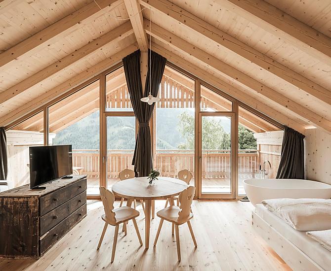 Působivá příroda, autentický statek a příjemná nenucenost – to je Zalnerhof v Lüsen. Údolí Lüsnertal, známé jako turistický ráj a brána do Dolomit, je ideálním výchozím bodem pro nezapomenutelné chvíle v horách. V klidné poloze zvou ke strávení pohodové dovolené čtyři exkluzivní apartmány. Pocit útulnosti prostupuje každý detail – od vůně dřeva až po náš řemeslně vyráběný alpský sýr, který patří k nejlepším v Jižním Tyrolsku.