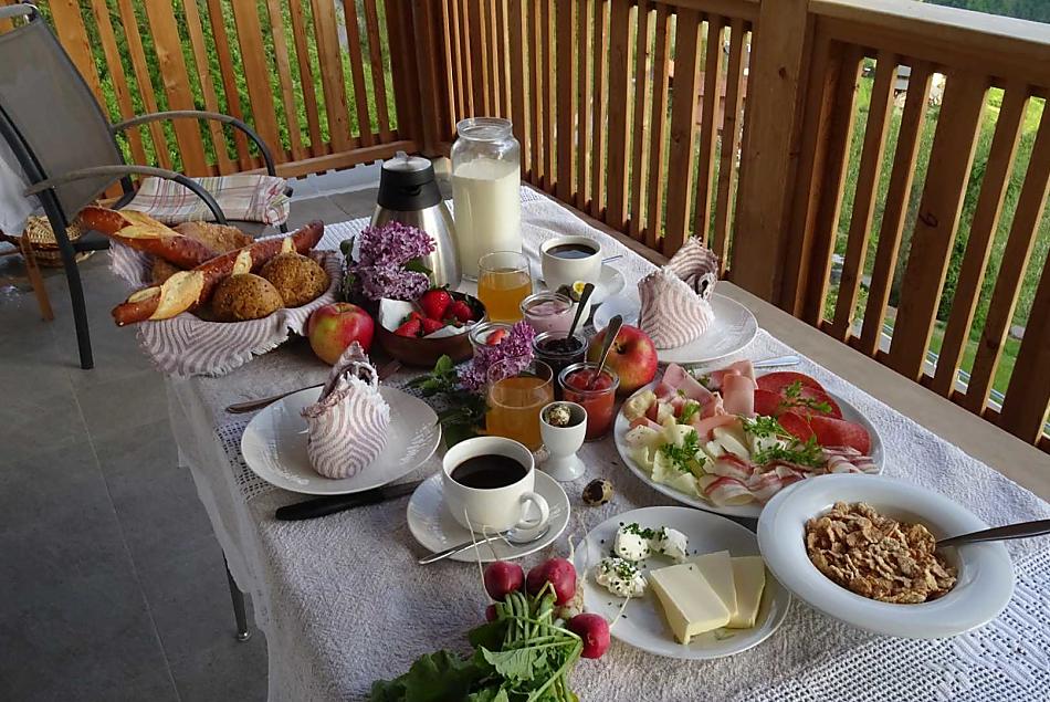 • Snídaně s vlastními produkty ze statku: mléka, vejce, mamelády, ovocné šťávy, čerstvá zelenina podle sezóny, čerstvé ovoce podle sezóny
