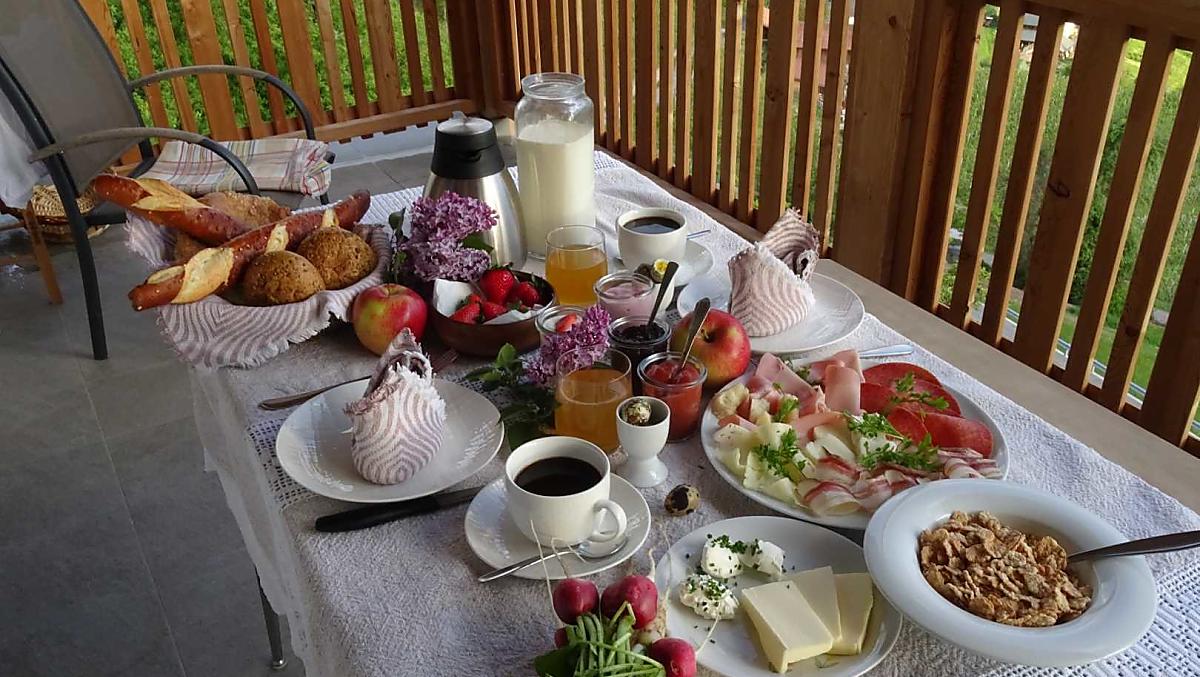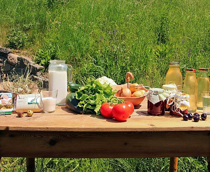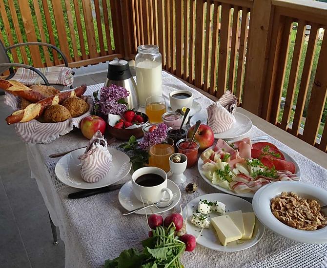 - Snídaně s vlastními produkty ze statku: mléka, vejce, mamelády, ovocné šťávy, čerstvá zelenina podle sezóny, čerstvé ovoce podle sezóny