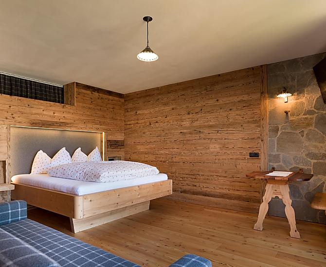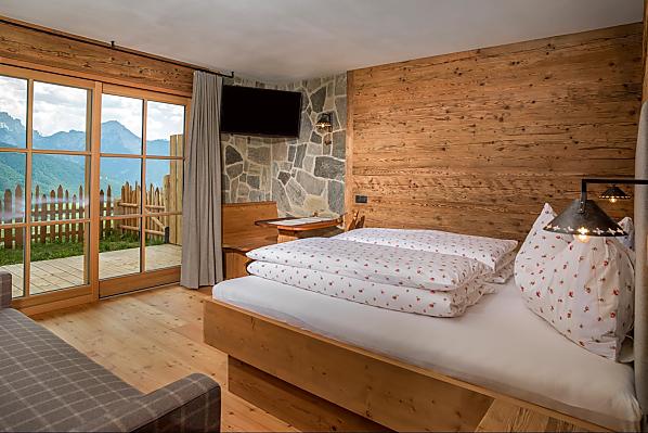 Náš statek se nachází v nadmorské výšce 1450 m nad obcí Innichen a údolím Pustertal. Statek stojí osamocene a i z postele se vám naskytne úchvatný výhled na protejší vrcholky Dolomit. Na našem statku máme krávy, telata, slepice s kohoutem, poníky, haflingské kone, mnoho kocek, králíku a našeho psa Kittiho. Náš dum jsme nove postavili a najdete u nás naprostý odpocinek – deti prozkoumávají statek a naše lesní hrište s malým potuckem, zatímco maminka s tatínkem relaxují v jedné z našich saun nebo na odpocinkových lužkách ze sena. Rodina si spolecne užije spoustu zábavy pri koupání v našem vyhrívaném prírodním bazénu.