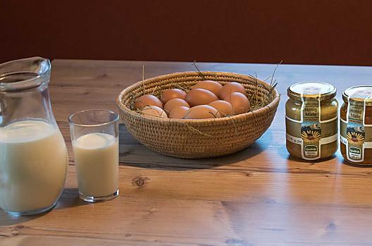 Vlastní produkty ze statku : mléka, vejce