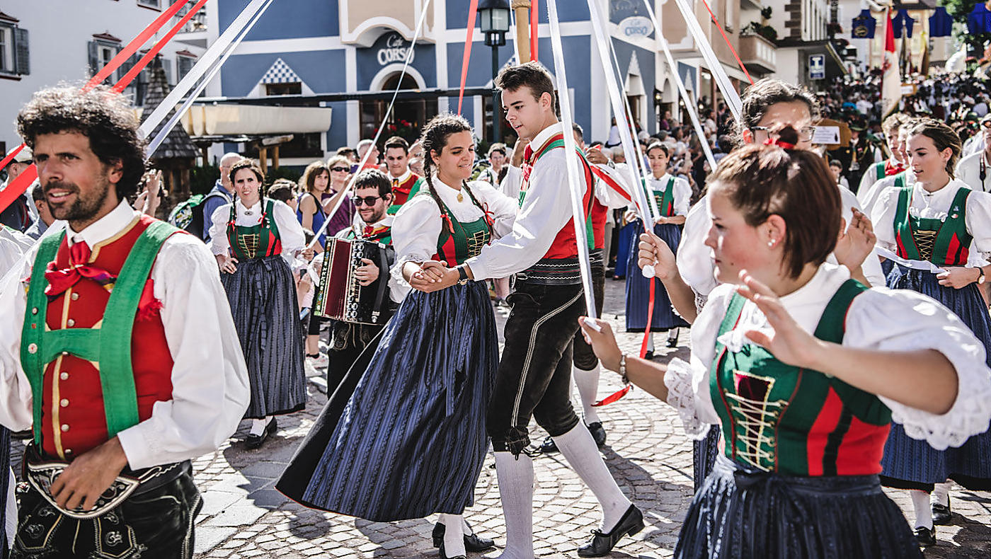 Přehlídka tradičních krojů je spojena s velkou slavností, kde můžete obdivovat tradiční lidové tance, poslouchat grödenskou hudbu a pochutnat si na regionálních specialitách.
