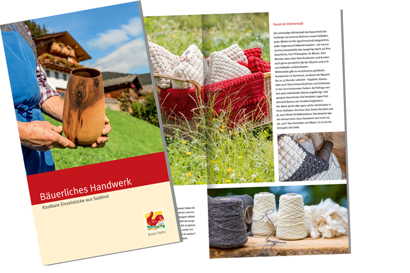 Zde obdržíte zdarma svůj osobní výtisk brožury "Bäuerliches Handwerk" s mnoha jedinečnými ručně vyráběnými předměty.