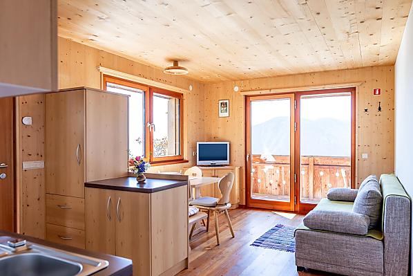 V romantickém prostredí jablonových sadu leží naše usedlost s vlastním prírodním koupacím jezírkem, útulným trávníkem na opalování a grilem. Vychutnejte si výhled na lázenské mesto Meran a úchvatné hory a relaxujte u bazénu. Snídane se podává formou bohatého bufetu a vecer si mužete v selském šenku pochutnat na jihotyrolských specialitách.