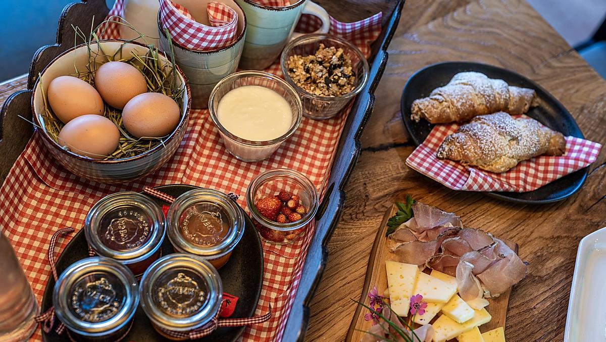 - Snídaně s vlastními produkty ze statku: mléka, jogurt, sýr, máslo, ostatní mléčné produkty, špek, uzeniny, vejce, med, mamelády, sirup, ovocné šťávy, chléb, pečivo