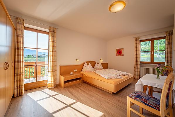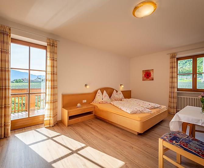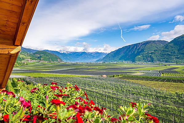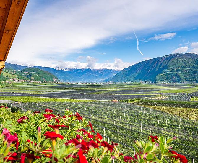 Náš statek je obklopen vinicemi a ovocnými sady s neomezeným výhledem na údolí Etschtal a na Bolzano a Meran.