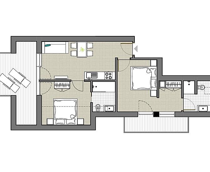 4 apartmány: 2-4 osoby, 2-5 osoby, 2-6 osoby