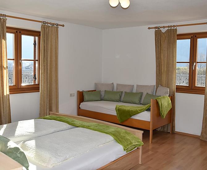 Náš statek, který se nachází daleko od silnice uprostred ovocných stromu, je ideálním místem pro dovolenou v prírode. Centrum obce je vzdáleno asi kilometr chuze a verejná doprava pouhých 200 m. Prímo vedle našeho statku prochází cyklostezka Via Claudia Augusta. Kolem domu máme dostatek prostoru s grilem a detským hrištem pro naše mladší hosty. Pred domem je na jare, v léte a na podzim k dispozici prostorné posezení, kde mužete trávit vecery. V zime se v naší spolecenské místnosti porádají rodinné hry a mnoho dalšího. Na našem statku žije pes Balu, slepice a krepelky, které se rády nechávají hladit a krmit.